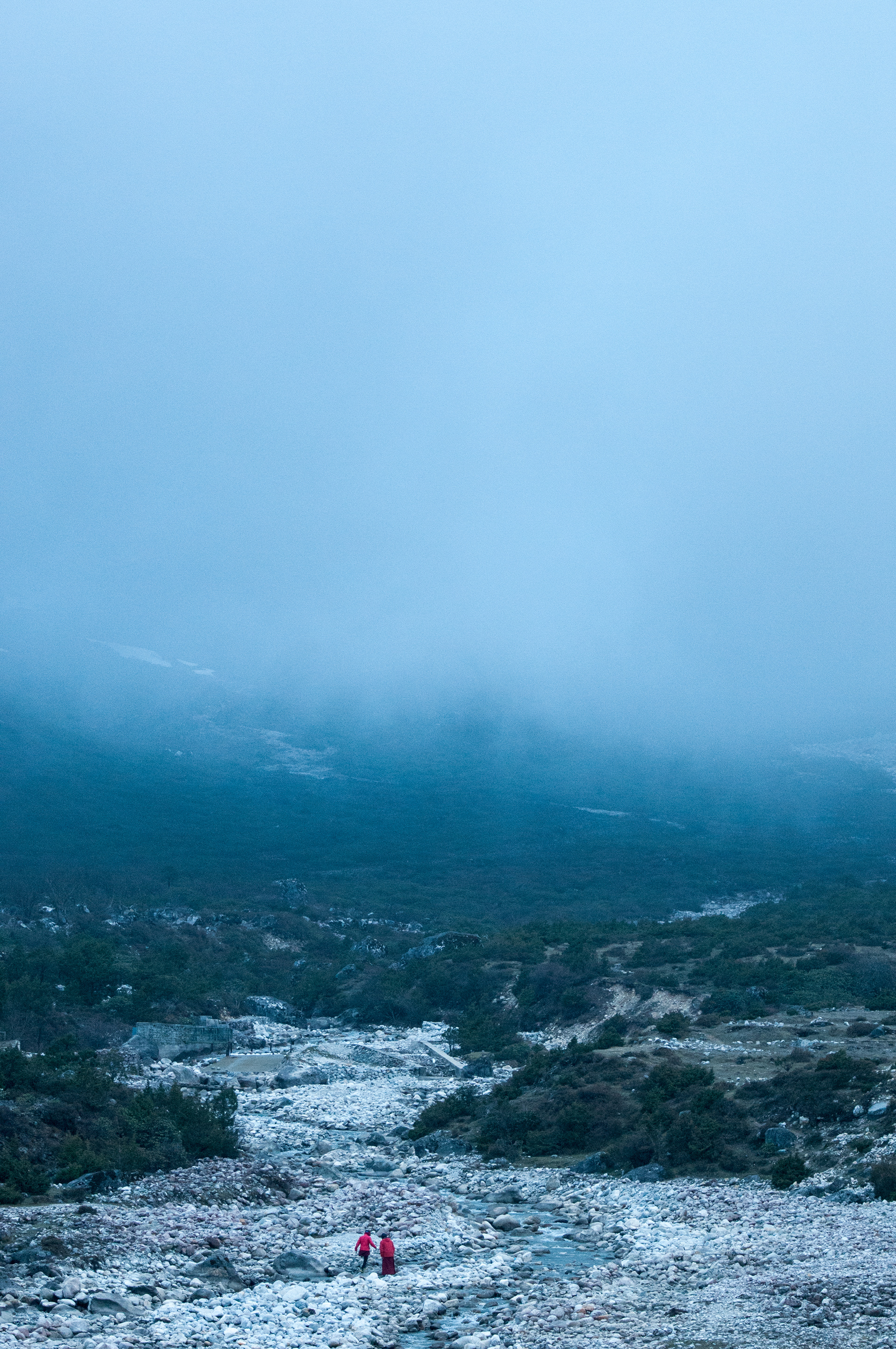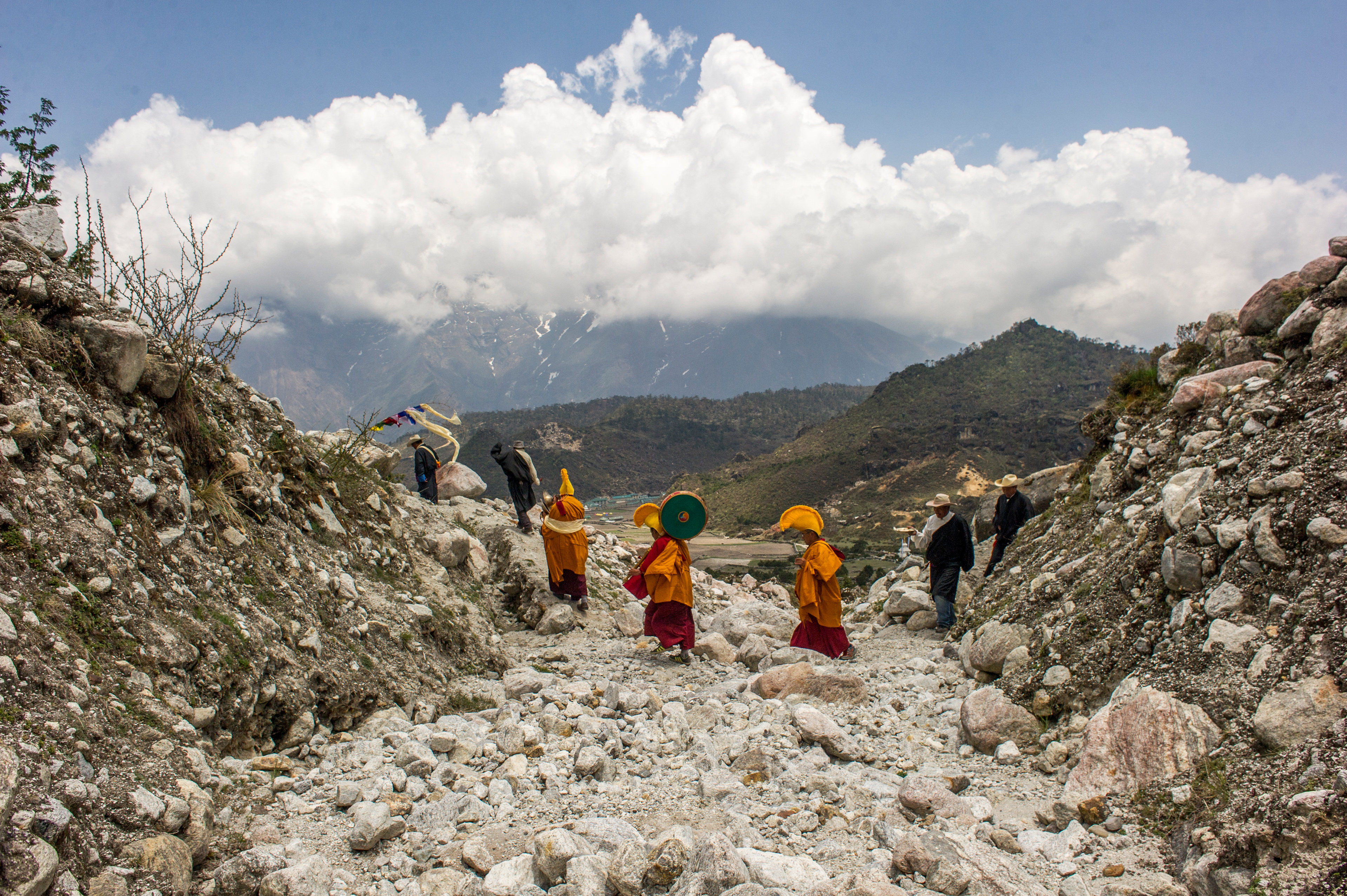May 24, 2015 - KHUMBU - Monks from Kunde gompa cross a landslide outside Kunde and Khumjung villages during a harvest puja.