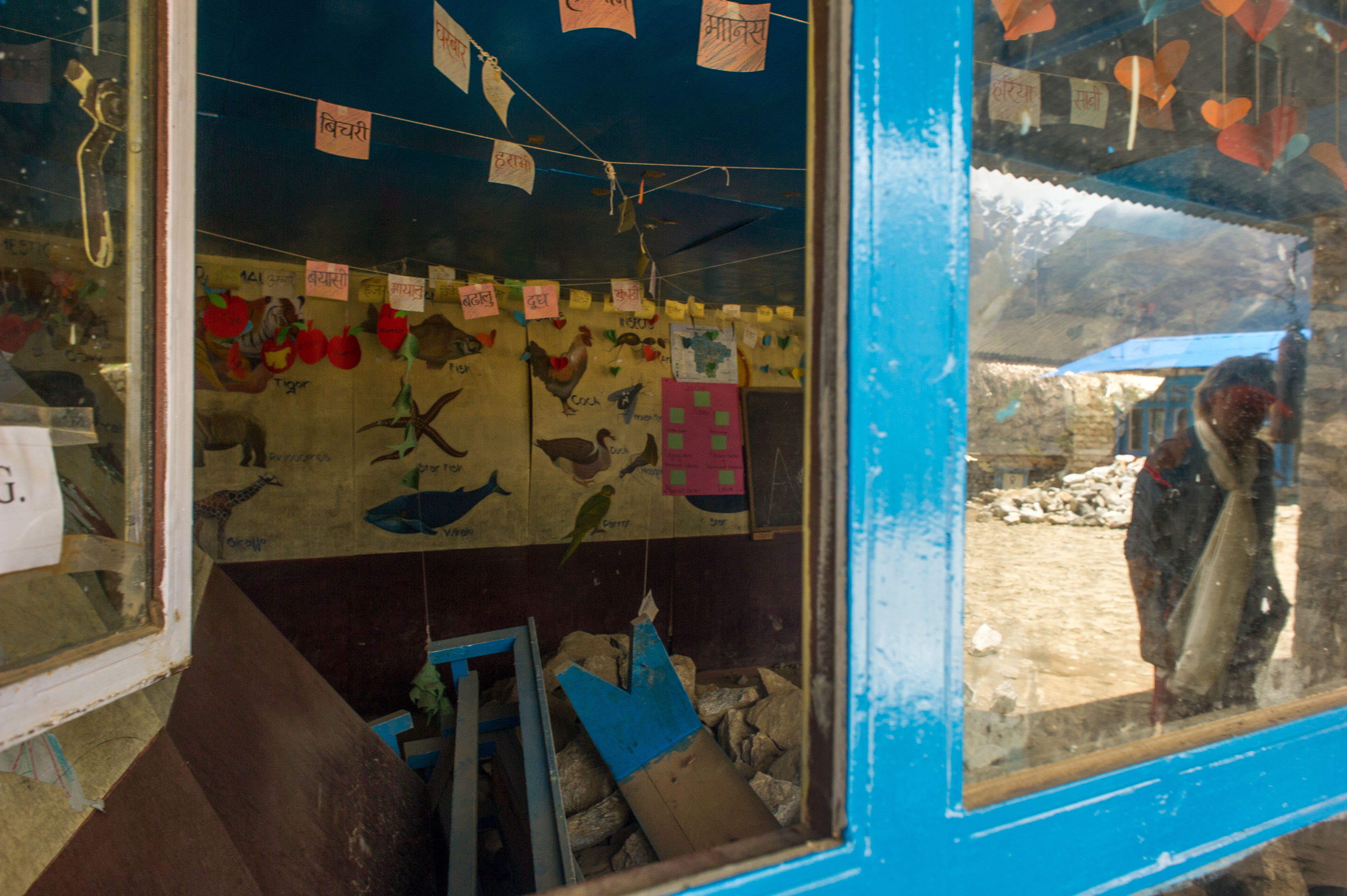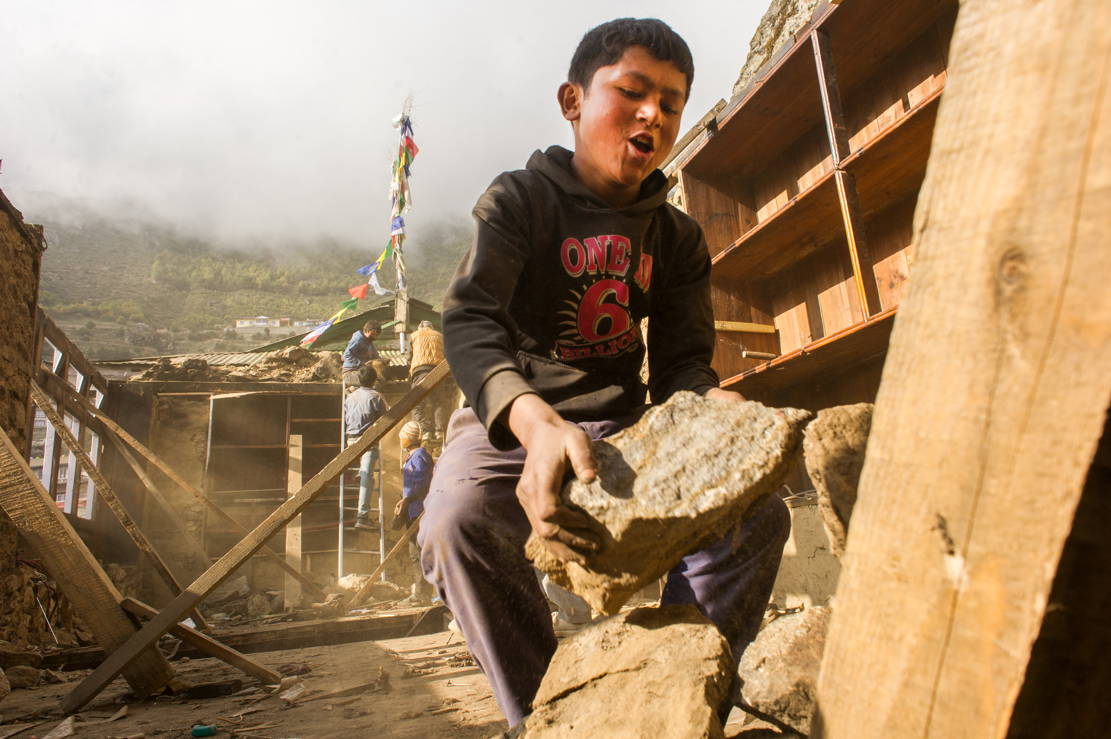 In the Khumbu Region, near Mount Everest, most people were outside during the midday earthquakes, so few deaths resulted, but entire villages were destroyed. Construction equipment can't make it up the small walking paths, so all demolition and reconstruction had to be done by hand.
